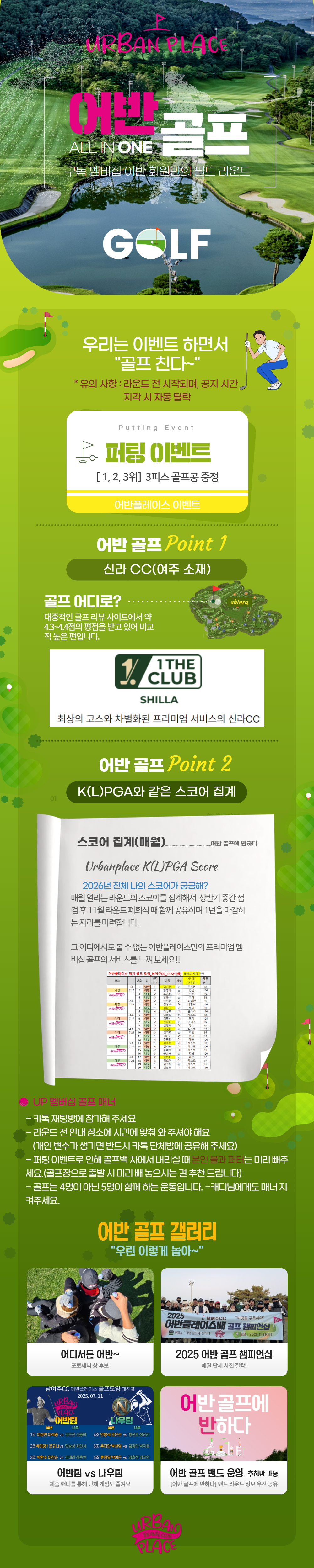 - 일자 : 2026년 04월 10일 (금) 06:30 클럽하우스 조식 식당으로 모여 식사 후 07:00 퍼팅 연습장으로 이동해서 퍼팅 이벤트 시작